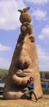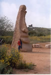 The creation of a guardian is an authentic dialogue with mother earth, which is the womb. The result is a face of a human that is connected to the Roots. The creations resemble ancient faces of Aztec, Pagan & primitive creations. The sculpture is in a pyramid shape – its lower part is wide and its top is narrow. Instead of sculpting from the outside in, as most carving work, the artist makes the statue by sculpting from inside out, creating a 3-dimentional "negative" image of the shape of the guardian. In the technique that the artist has developed he begins by massive digging using a tractor, followed by manual digging using a shovel. Finally he spends days inside the earth, extracting soil using a kitchen-spoon and re-adding & pressing soil in other places. This creates the fine details on the face. After this is done, the concrete is poured and metal poles are lowered into it. As the concrete hardens, the outer-layer which is in direct contact with the earth soaks the reddish-brown sand, which makes the guardian appear as an ancient face. Two weeks after the concrete was poured the statue is pulled out of the ground. The guardian then emerges from the ground, lifted by a giant crane and transferred on a tank-carrying trailer to the place where it will be mounted. After the guardian emerges from the earth, it is not retouched or re-finished, which is why the "negative" must be shaped perfectly. Emilio tries to work without using a model, because he believes that if a model exists, then it is easy to duplicate, and the creation is a fake. This size and scale of work, along with the feeling of the earth, gives Emilio the inspiration to sculpt, comes from inside of his mind and flows through his body and creates according to the energy which the earth radiates. |